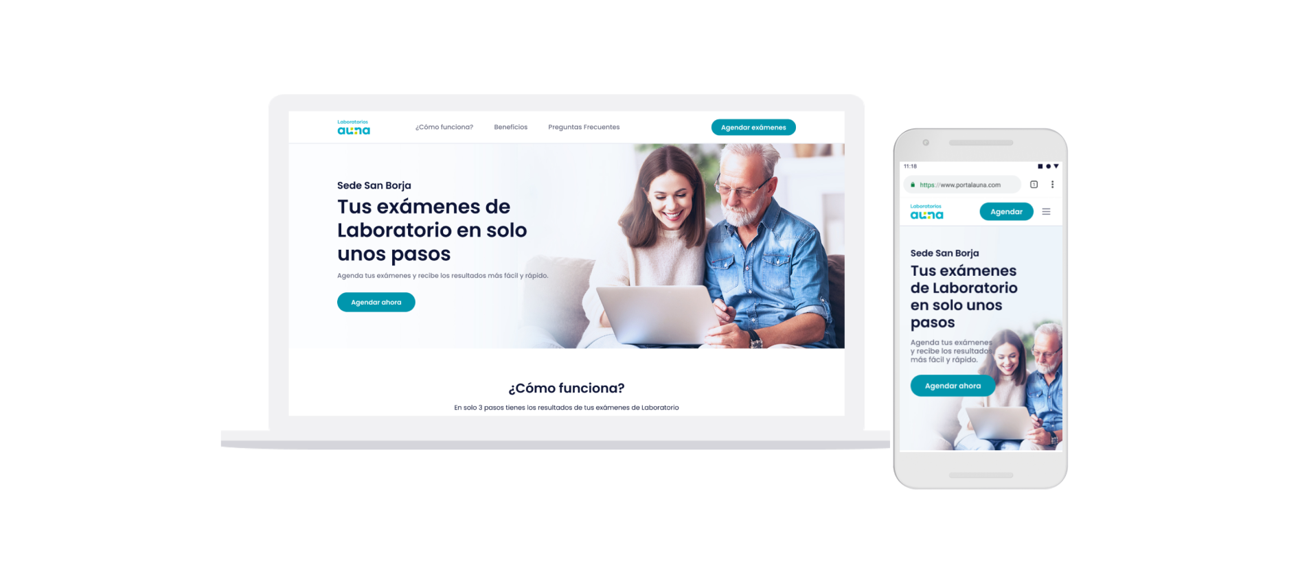 We delivered the first version of the Auna Laboratory Services site, featuring: